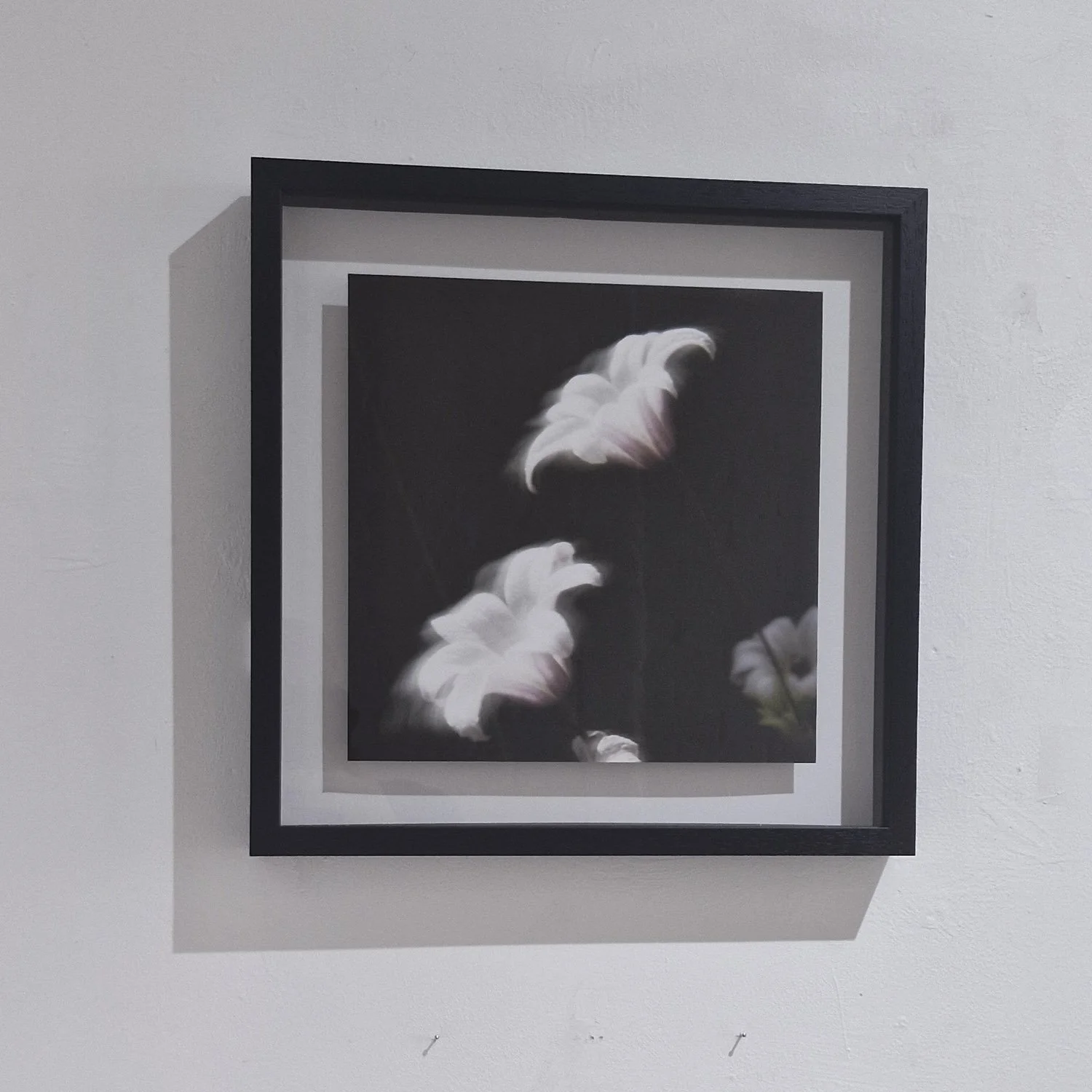 Printed photograph floating against a white background in a 40mm deep black box frame. The photograph is 300mm wide by 300mm high.